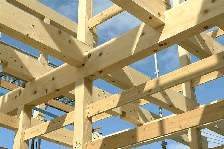 家の構造は、木と木を組みあげる「木組み」で軸組を作ります。金物接合をしない設計をします。