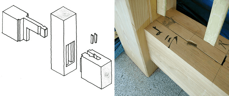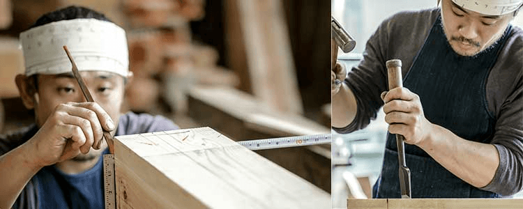 「木組み」は、大工が一本一本の材に「仕口・継手」という凹凸を加工することで実現します。